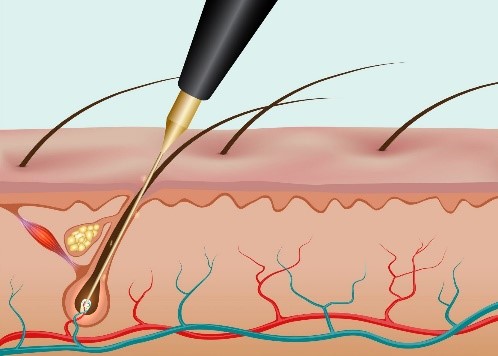 Es una técnica de depilación que utiliza la corriente eléctrica, canalizada a través de una aguja, para destruir el folículo piloso e inhabilitar su capacidad de crear un nuevo pelo. Está especialmente indicado para los pelos blancos y muy rubios que el láser no consigue eliminar.